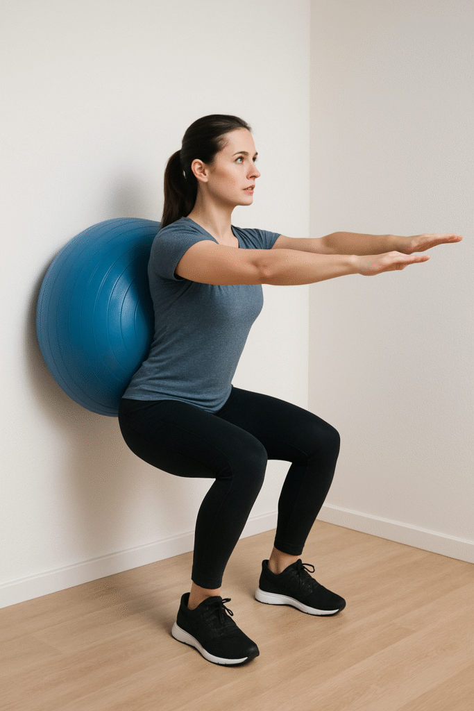 2. Sentadilla con Fitball contra la Pared (Wall Squat with Fitball)