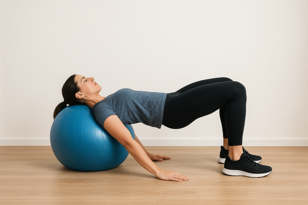 - Principiante: realiza puente básico con fitball más grande para mayor estabilidad.