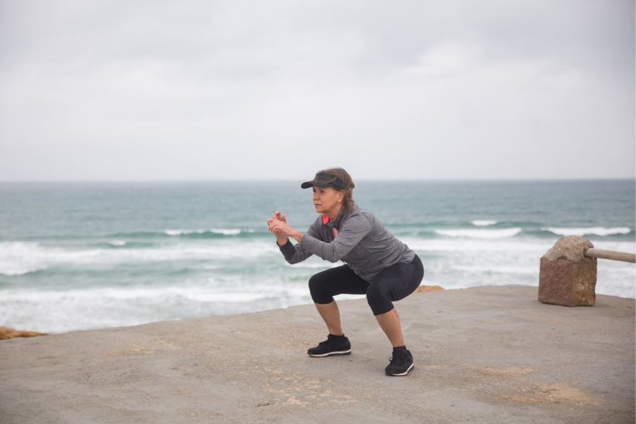 - Realiza una sentadilla profunda y quédate abajo.