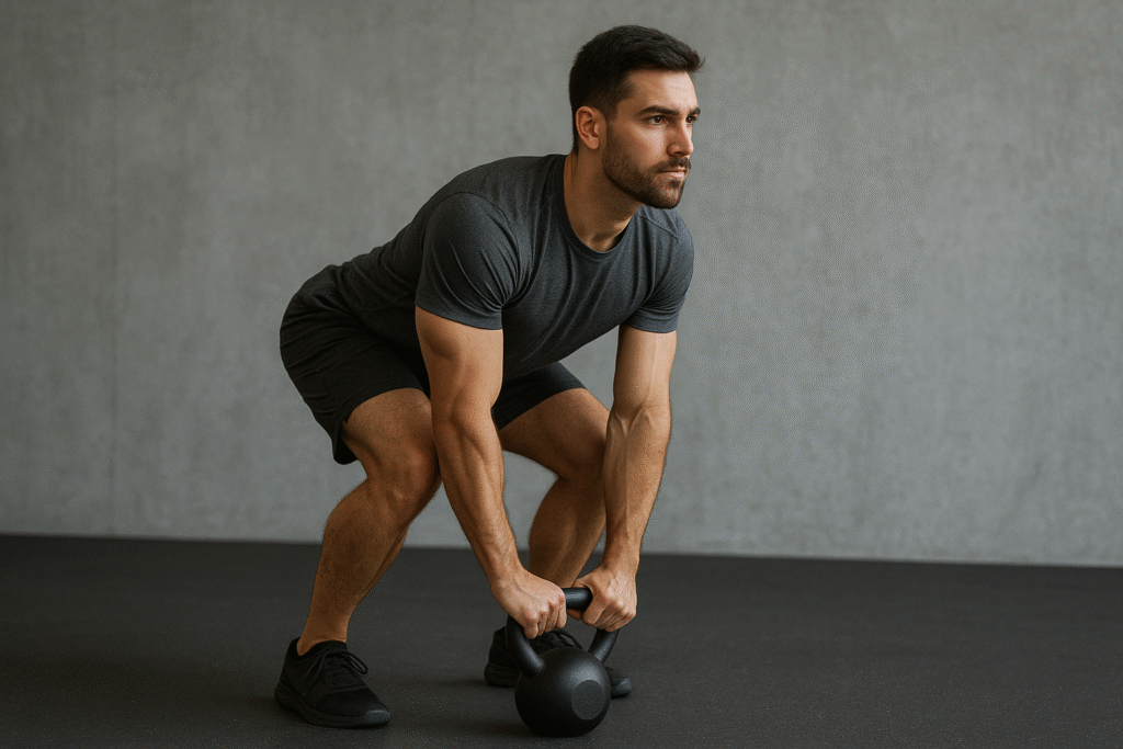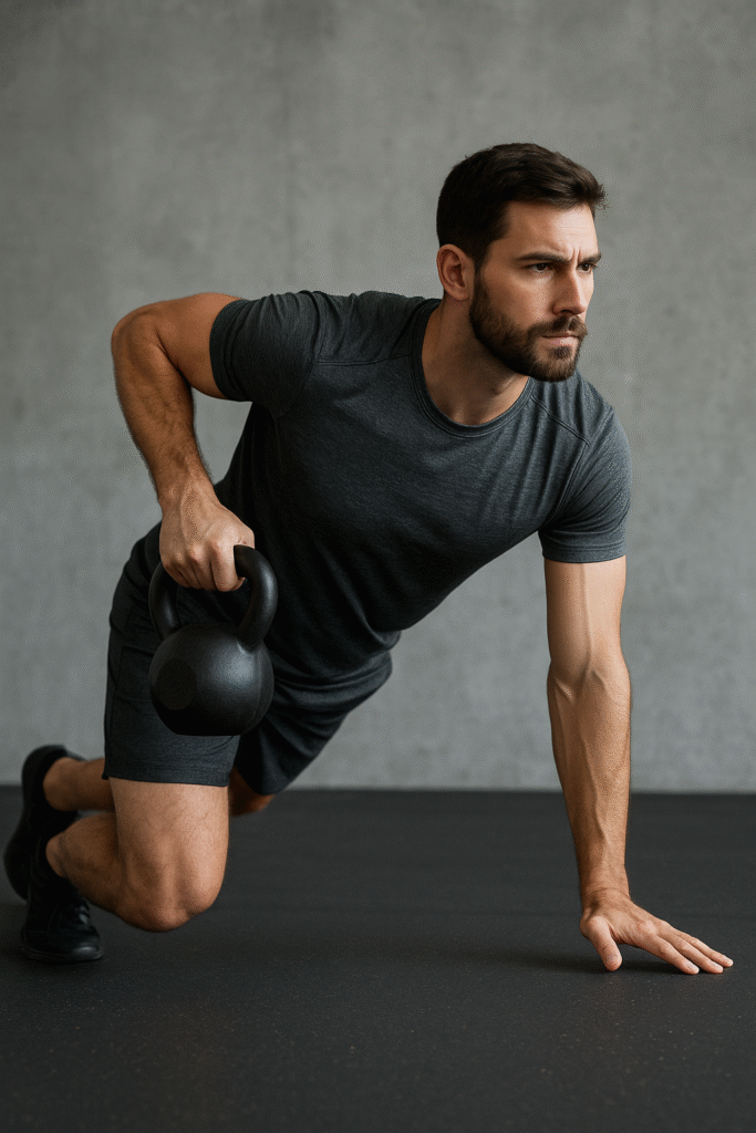 - Principiante: usa kettlebell ligero o solo peso corporal.